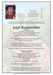 Wir trauern um unseren langjährigen Obmann und Ehrenmitglied Josef Rupprechter – „Meista Seppä“
